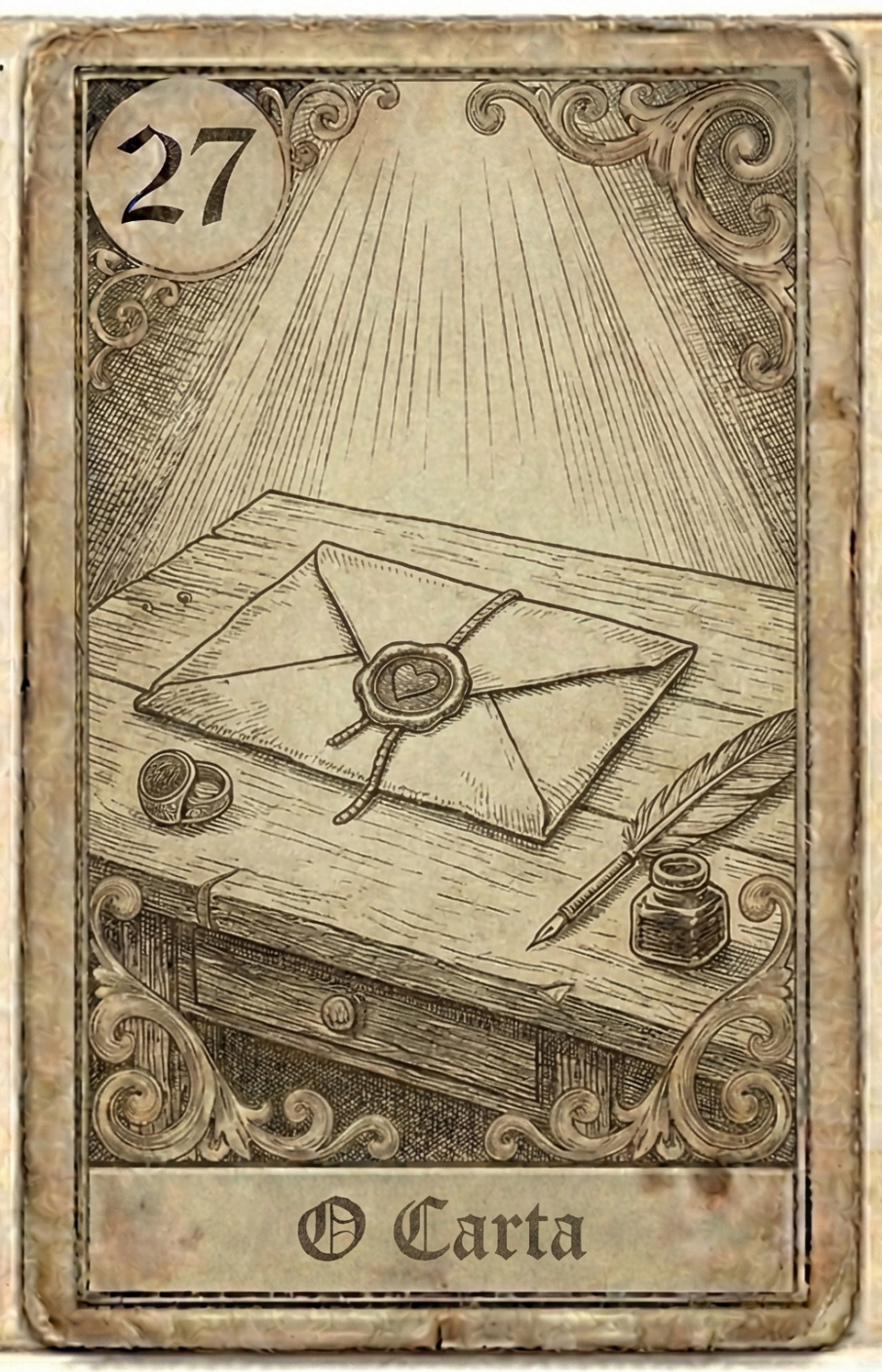 Para criar narrativas coerentes, leia duas cartas como assunto + complemento. Coração + Anel significa amor que se concretiza em compromisso.