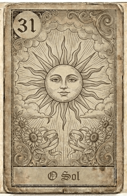 O Sol no baralho cigano representa sucesso, otimismo e clareza total em suas situações. Esta carta traz energia positiva, realizações concretas e momentos de felicidade genuína.